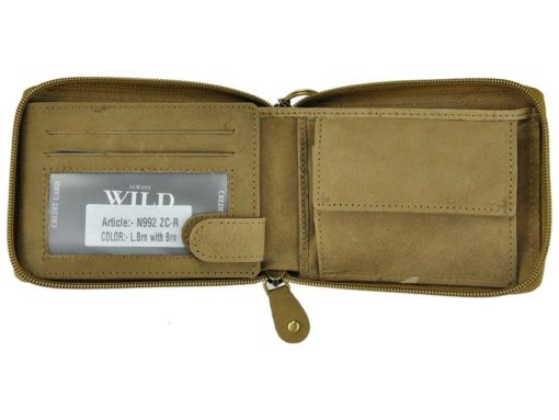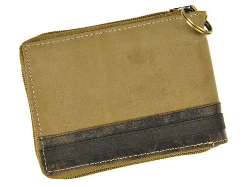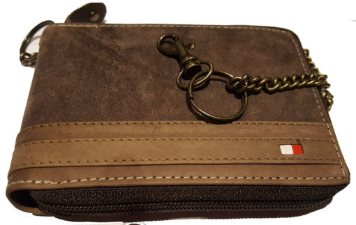 Always Wild Man Leather Wallet with zip and chain dark and light brown