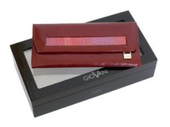Wallet for women by Giovani Collection Swarovski Line. Wallet decorated with a large panel of original Swarovski crystals with a certificate! Made entirely from high quality genuine leather. Wallet is packed in a stylish box – perfect for a gift. Each leather wallet is unique!