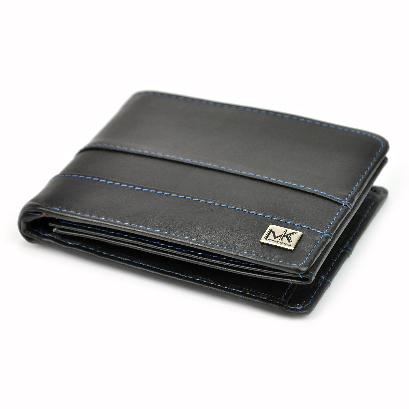 Money Keeper Man Leather Wallet with RFID Black + blue MT29 CC5600