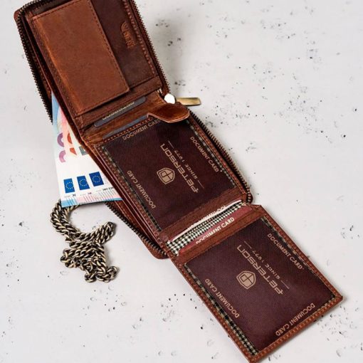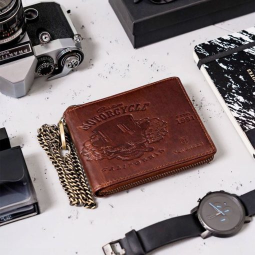 Peterson man leather wallet brown chain PTN N992C-01-HWM