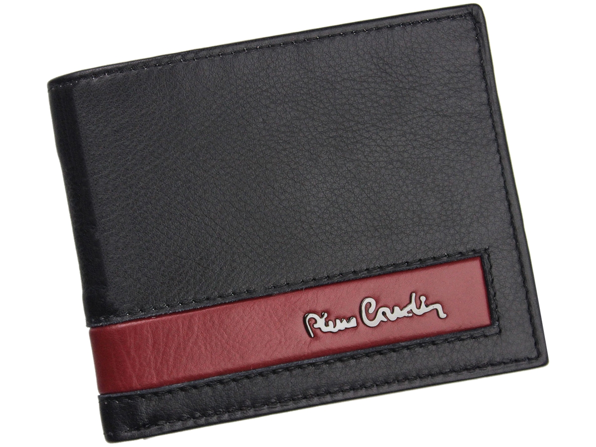 Pierre Cardin Man Leather Wallet Black-red stripe Sahara RFID Secure