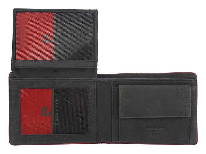 Pierre Cardin Unique Leather Wallet for Men Black-dark red IEPC05TUMBLE8886